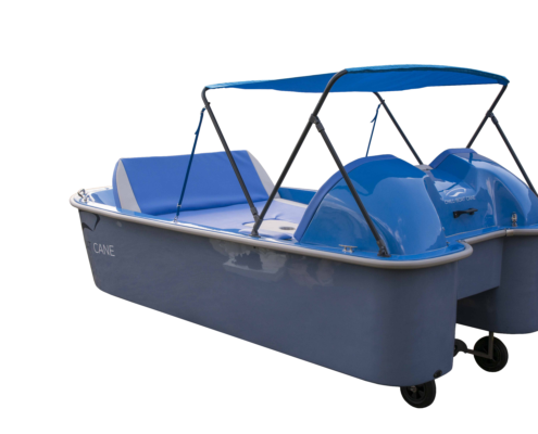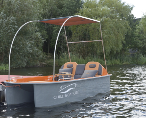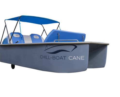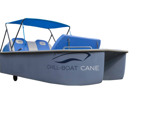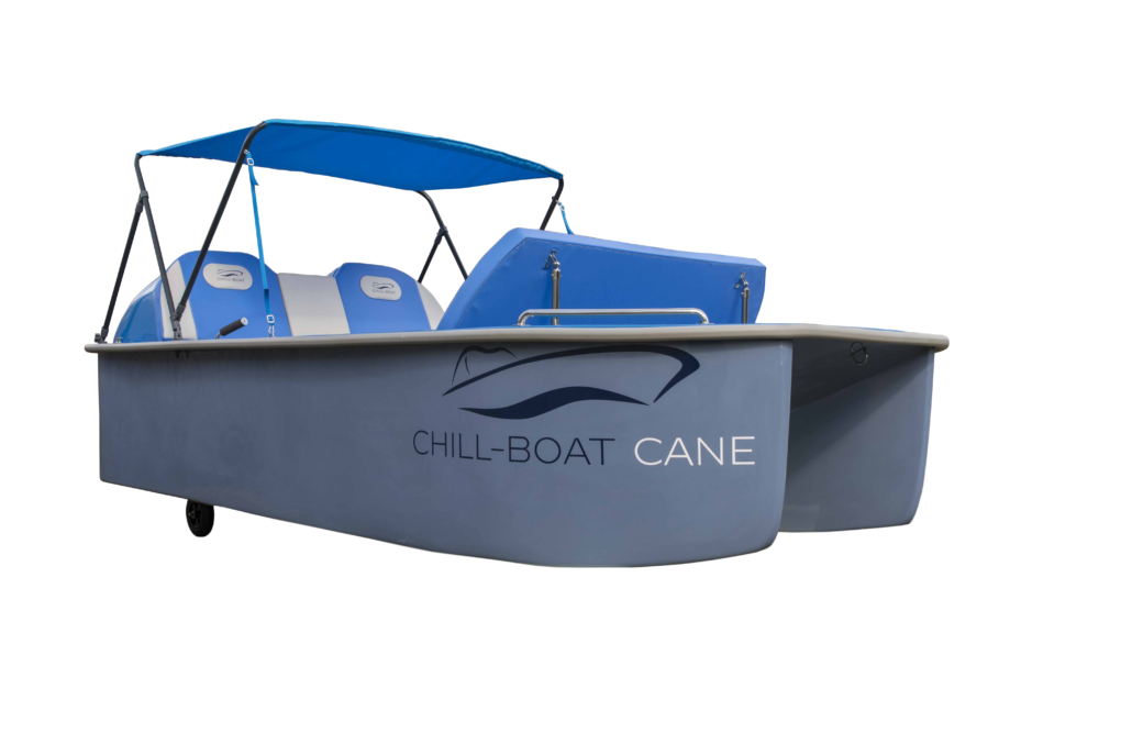 Chill-Boat Cane catamaran with solar panel system without the need to charge batteries.